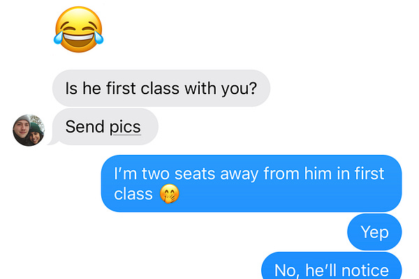 Nossa, é muito espaço nesse assento. E a aeromoça acabou de me chamar pelo meu nome? Era talvez a terceira vez que eu voava na primeira classe. Eu…